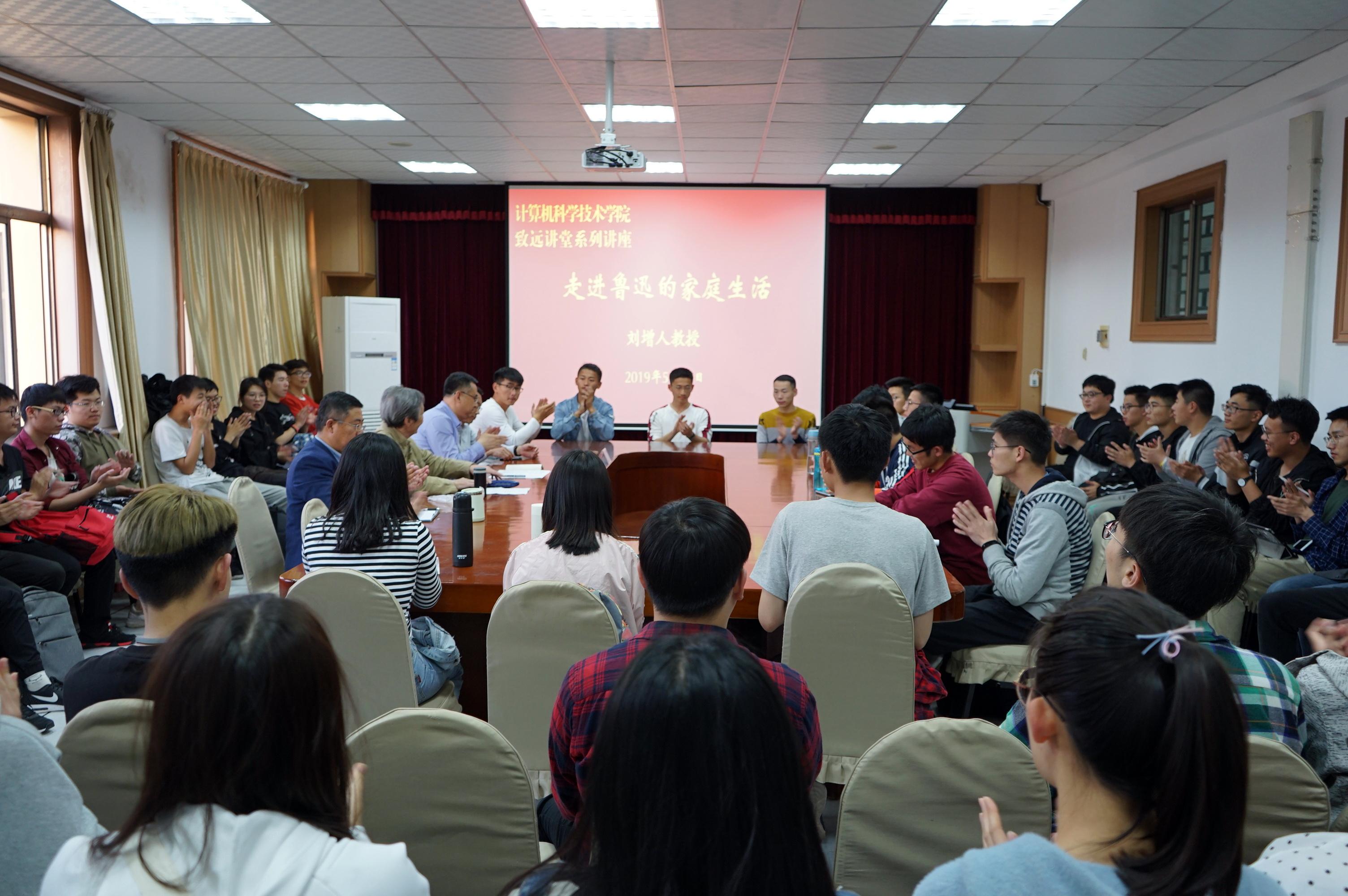 刘增人教授谈到,家庭生活是切入鲁迅先生精神世界的重要视角,更是全面理解和评价鲁迅不可或缺的重要尺度,还是科学历史地通达鲁迅生活和工作的时代情状的重要途径。刘教授结合自身研究成果,用生动丰富的事例讲述了鲁迅的家庭背景、情感经历、求学历程、家庭生活等内容,展示了鲁迅先生鲜为人知的一面。刘增人教授说,今年恰逢“五四运动”一百周年,鲁迅作为“五四运动”的旗手和重要参与者,致力于思想启蒙、精神启迪和国民性改造,以笔为武器为中国的文化革命战斗一生,希望青年学生多向鲁迅先生学习,与祖国共奋进、与时代齐发展。