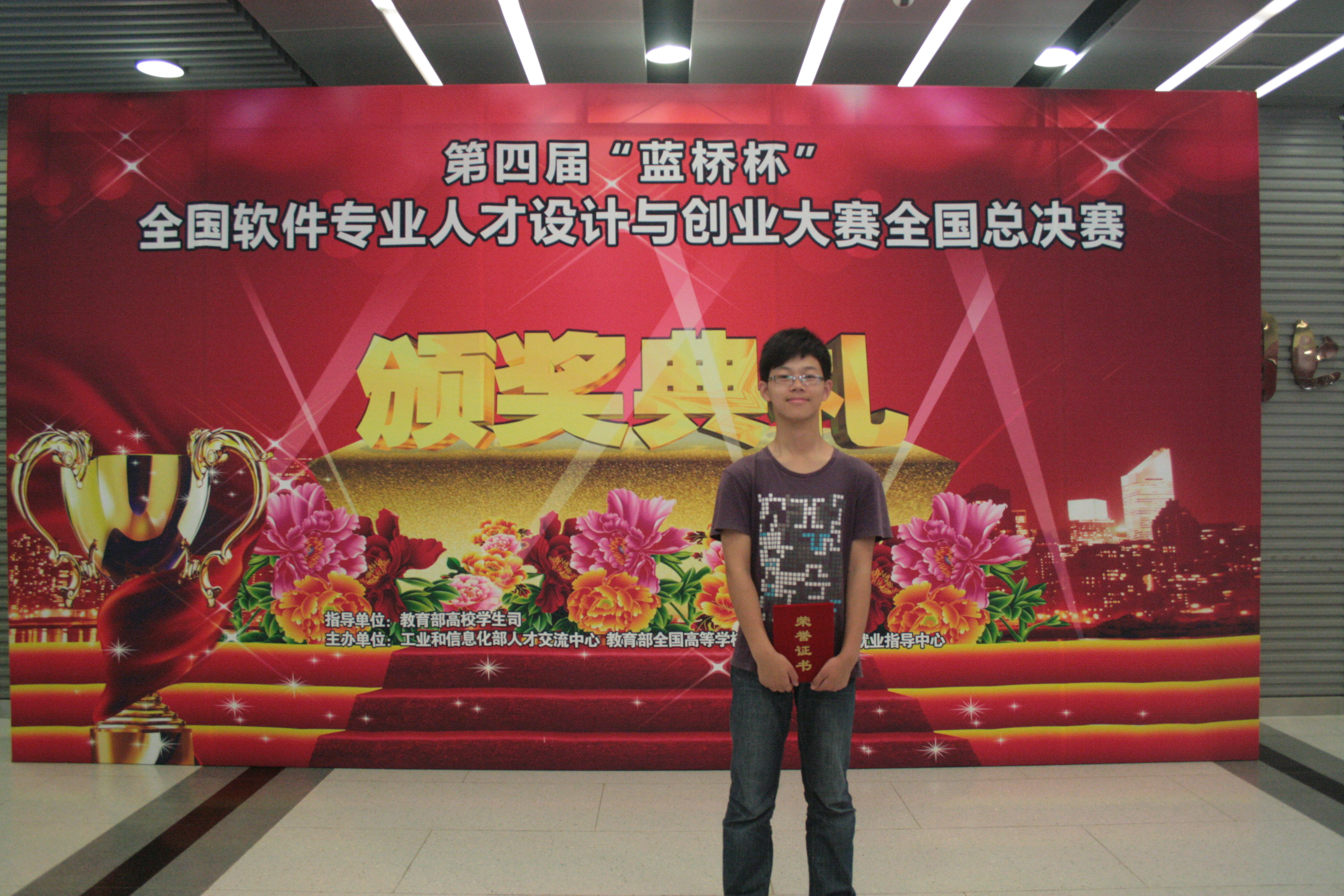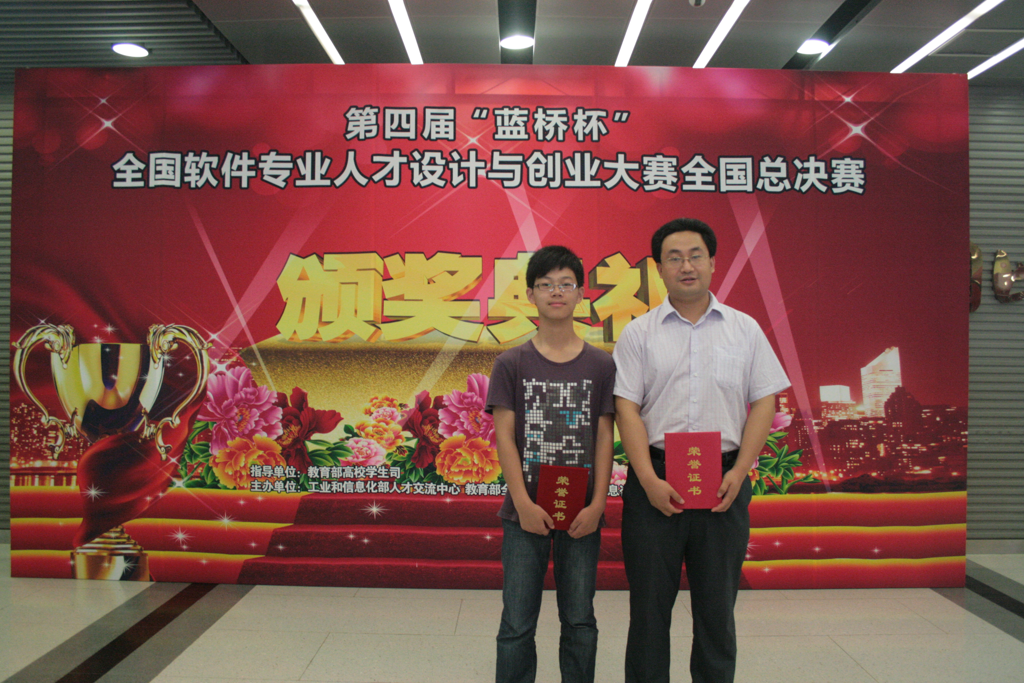 7月13日,第四届“蓝桥杯”全国软件专业人才设计大赛在北京大学体育馆圆满落下帷幕,由伦理电影 李建波副教授指导的邢召龙同学荣获C/C++程序设计B组总决赛全国一等奖,我校荣获“成绩优胜学校”及“优秀组织单位”称号。
