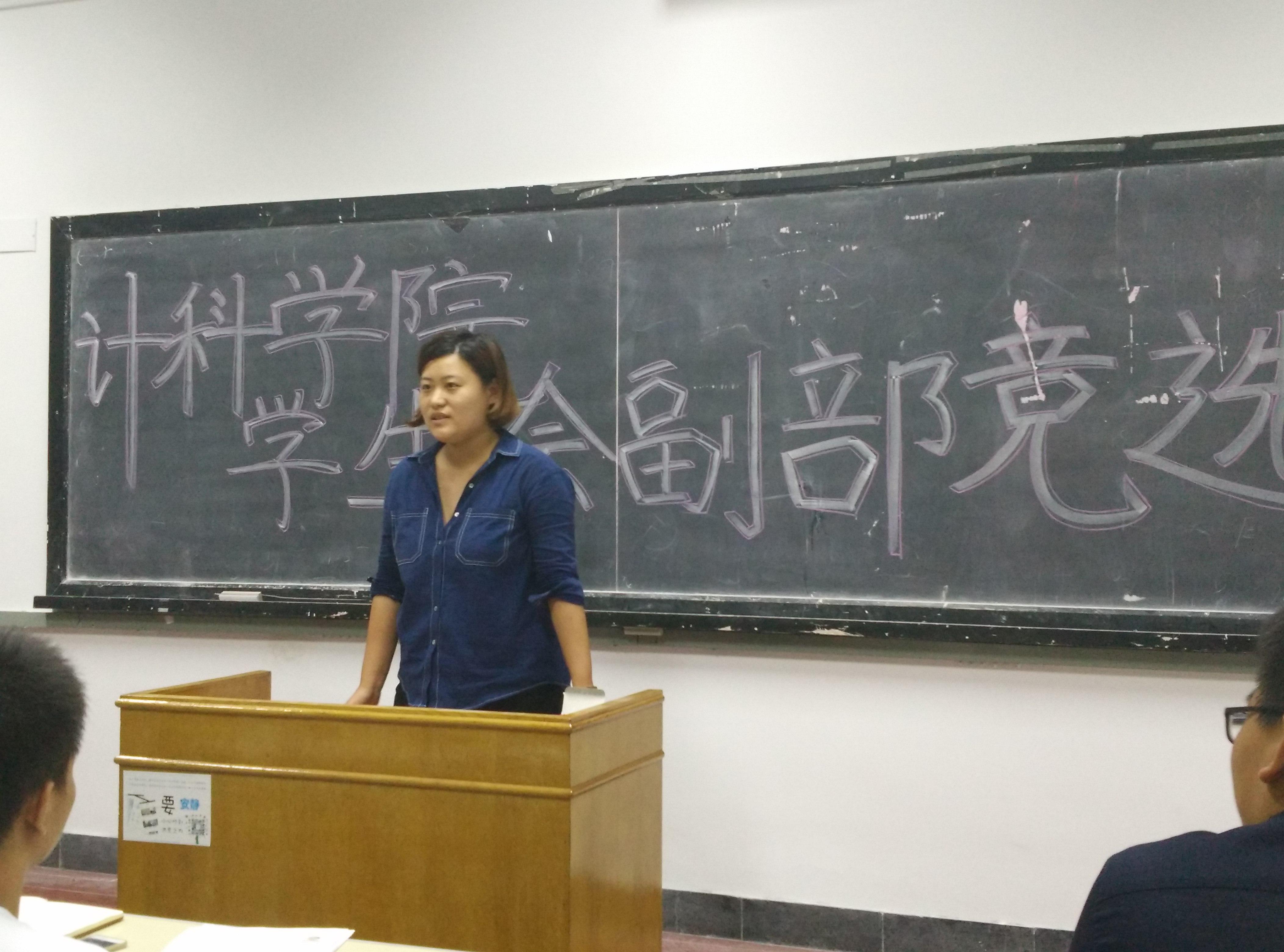 9月1日晚6点,院学生会副部长竞选大会在博知楼312举行。会议由学生会秘书处部长孙志玉主持,原院学生会主席、副主席,现任学生会主席、副主席以及各部部长出席会议。