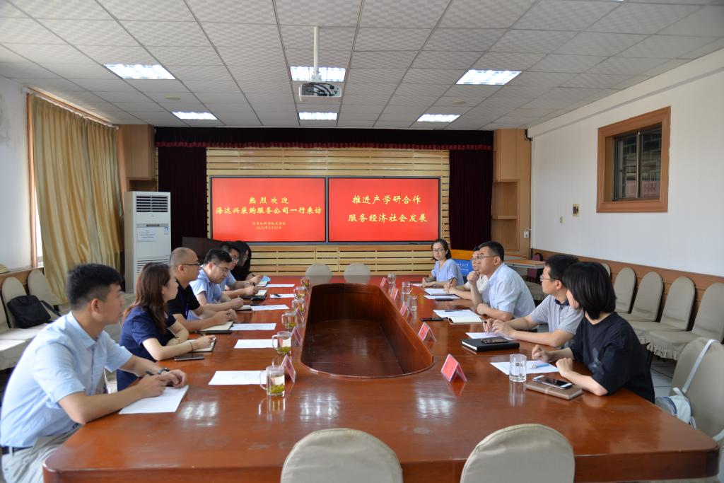 8月20日上午,海达兴采购服务公司总经理李明、研发总监张祥等一行6人来院洽谈院企合作事宜。双方在博知楼510会议室就合作项领域、合作方式等内容进行了会谈。院党委书记尹增刚、副院长王国栋、教师代表孙仁诚和杨环副教授参加会谈。