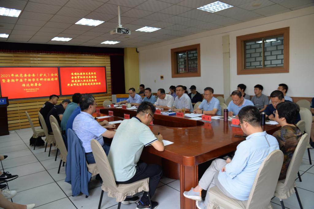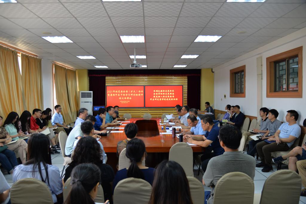 郭振波重点传达了胡金焱书记在三届七次全委(扩大)会上所作的《凝心聚力,争创一流,全力开创高水平综合性研究型大学建设新局面》工作报告、在学习研讨班上所作的《统一思想,凝心聚力,科学谋划“十四五”发展》主旨报告和夏东伟校长在学习研讨班上的总结部署讲话精神,详细解读了学校建设高水平综合性研究型大学的新办学定位,介绍了学校在人才培养、学科建设、科学研究、服务社会、人才队伍等方面取得的显著成绩和存在的问题,传达了全面提升人才培养质量、夯实一流学科建设基础、加快打造一流人才队伍、增强服务经济社会发展能力、谋划“十四五”事业发展、优化办学资源增强发展活力、提升治理能力提高办学治校水平、抓好常态化疫情防控等学校下半年八项重点工作部署。郭振波表示,校党委全委(扩大)会议和暑期中层干部学习研讨班相关报告紧扣新时代特征和学校战略部署要求,主题鲜明、内容全面、思考深刻,提出的重点工作的着力点和突破点准确,对校院工作有着重要指导意义;全院上下要认真学习、深入研讨,对照要求梳理工作进展和存在的差距,重点做好山东省高水平培育学科建设、“十四五”发展规划编制实施、电子信息专业学位博士点申报等工作,奋力推进伦理电影事业高质量发展。