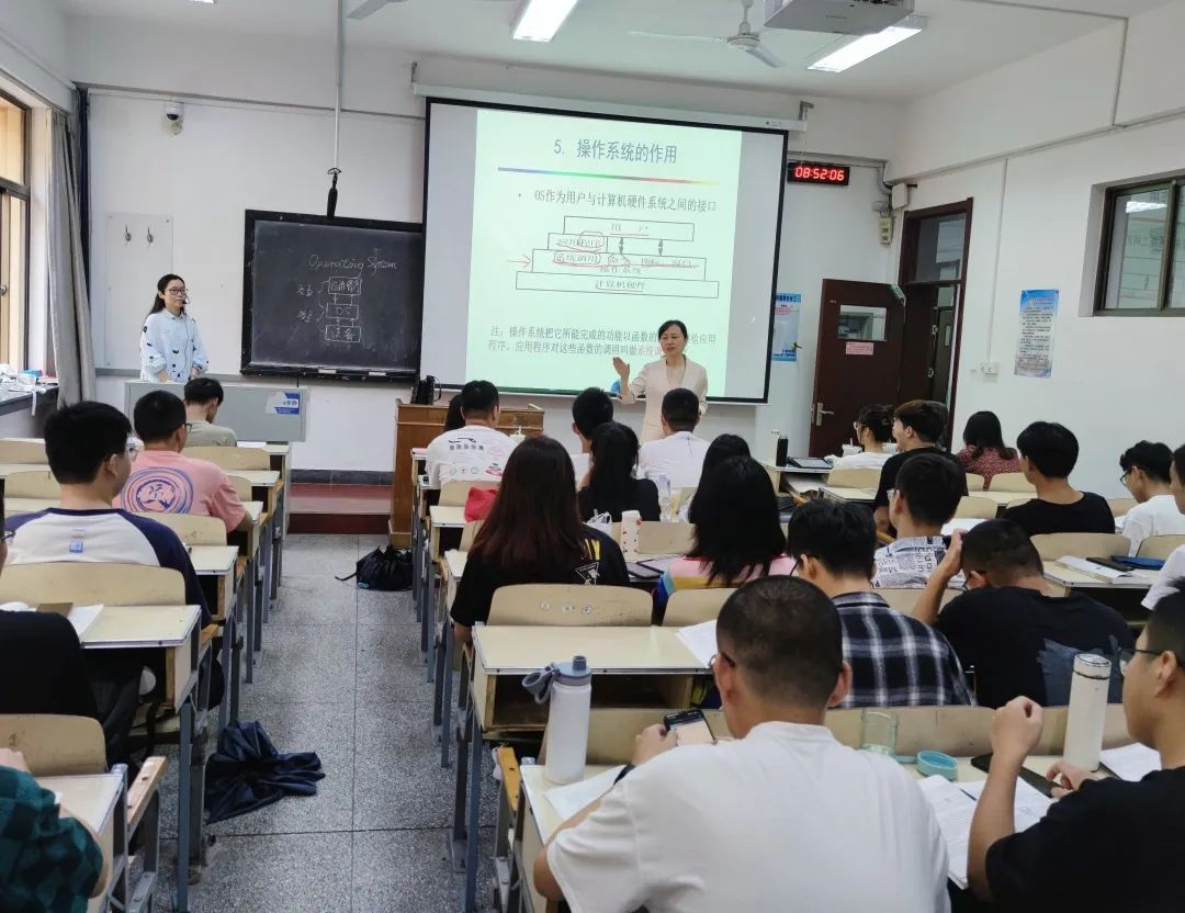 博知楼205教室,院党委书记潘秋鸿和同学们一起听取了《计算机操作系统原理》课程。在课间休息时间,潘秋鸿与任课老师和同学们亲切交流。她充分肯定了同学们的上课状态与精神风貌,并指出国与国之间的竞争,实质就是科技的竞争、人才的竞争,在科学技术迅猛发展的形势下,同学们一定要有时代紧迫感,刻苦学好专业知识,掌握先进的科学技术;要珍惜时间,制定学业规划,做到有目标、有行动,加强自我教育、自我管理、自我服务和自我监督,努力成为更加优秀的人。