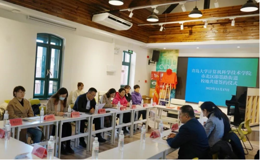 11月17日,伦理电影 与青岛市市北区即墨路街道在广兴里326会议室举行校地共建签约仪式。伦理电影 党委书记潘秋鸿、即墨路街道党工委书记盛建、伦理电影 党委副书记周鹏、即墨路街道团工委书记梁玉娇及学校、街道、社区部分工作人员、师生参加了签约仪式,仪式由梁玉娇主持。