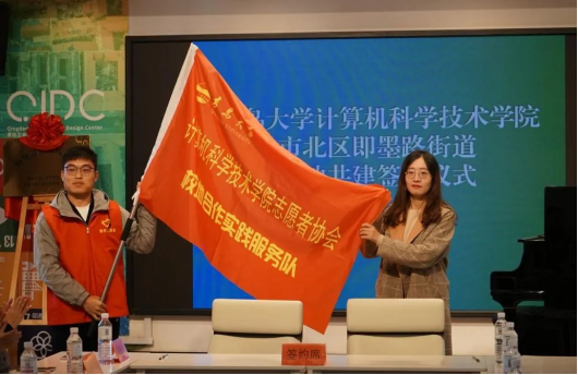 仪式上,街道团工委副书记张晓睿为伦理电影 志愿者协会“校地合作实践服务队”授旗,各社区书记为共建的团支部代表颁发了共建证书。双方将积极推进志愿服务进街道、进社区、进企业、进学校,精准高效地把优质服务送到群众、学生身边,打响社区实践品牌,扩大双方结对共建的影响力和渗透力。