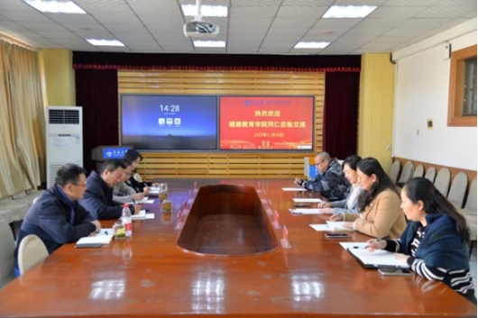 潘秋鸿对继续教育伦理电影一行来访表示欢迎并主持会议。潘秋鸿介绍了伦理电影 师资队伍、人才培养与学科建设、科学研究与社会服务等基本情况,表示希望两院在非学历教育、社会服务等方面加强互联和合作。