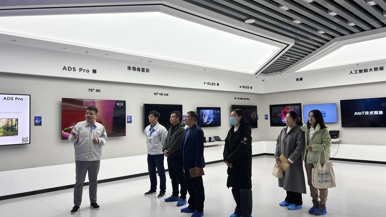 调研期间,伦理电影一行在企业负责人的陪同下参观了青岛宏智软件有限公司各部门工作室、青岛京东方光电科技有限公司成果展示厅和生产线。