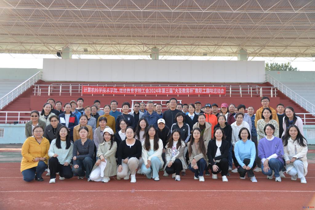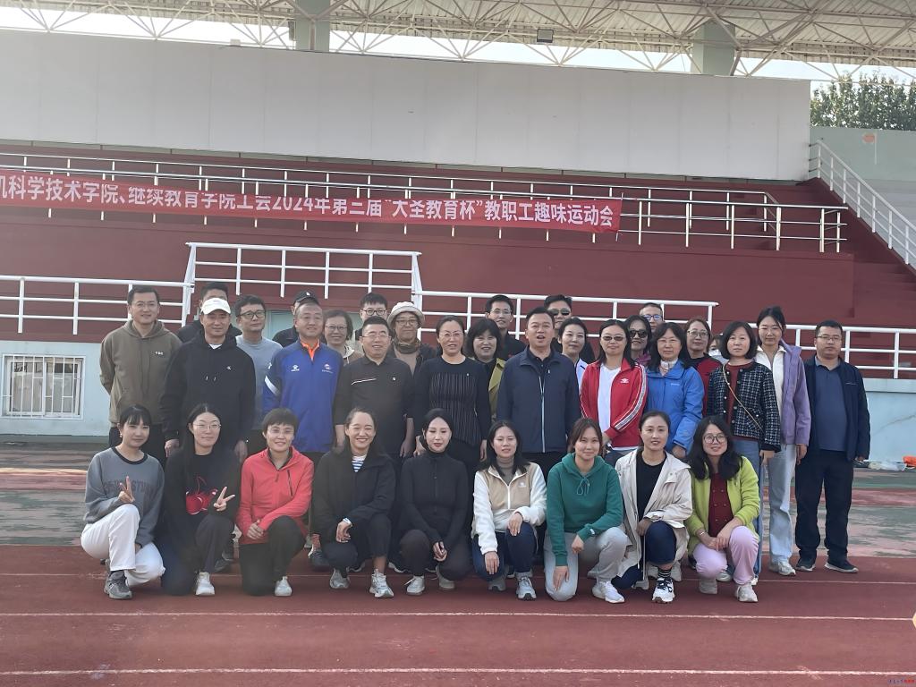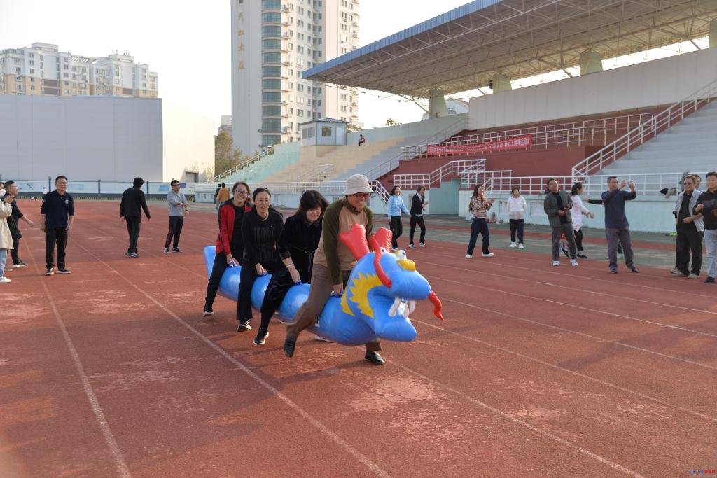 工会联合继续教育伦理电影工会在浮山校区西院体育场举办了第三届教职工趣味运动会。本届教职工趣味运动会共设“骑长龙”“托球跑”“协同作战”和“同心击鼓”等项目。