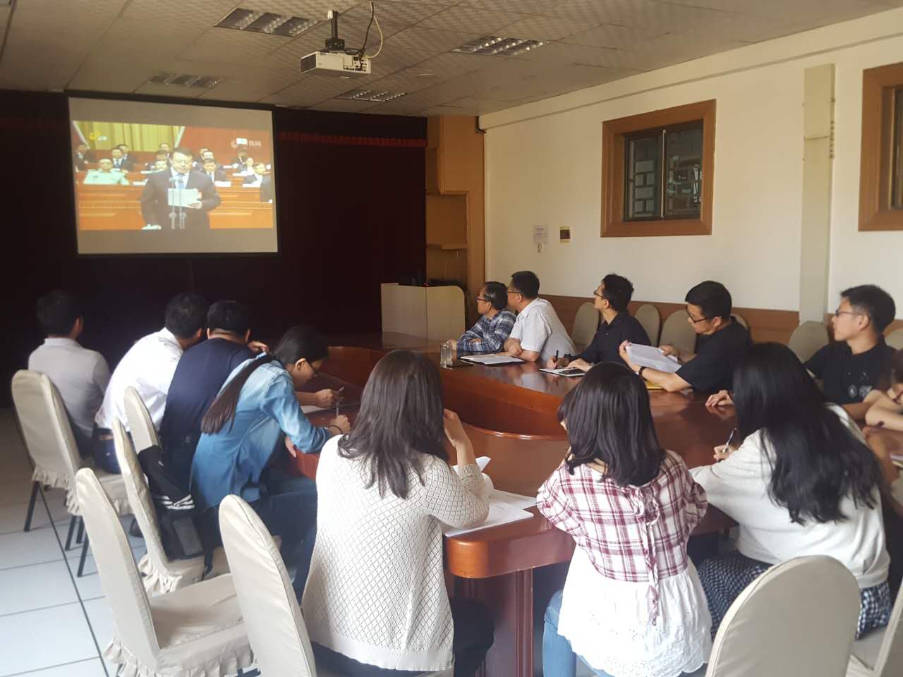 6月13日上午,院党委在博知楼510会议室组织党委成员、院机关党员干部、伦理电影各党支部书记、部分研究生党员通过网络直播集体收看了中国共产党山东省第十一次代表大会开幕式实况,认真聆听了省委书记刘家义同志所作的题为《紧密团结在以习近平同志为核心的党中央周围奋力开创经济文化强省建设新局面》的报告。
