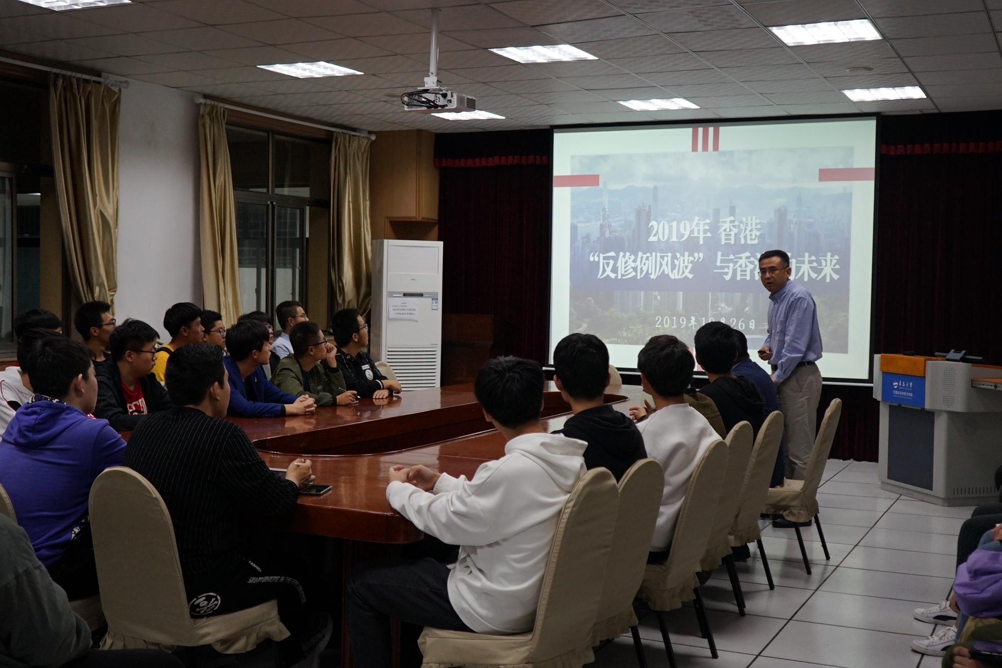 11月1日晚,计算机科学技术学院党委书记尹增刚在博知楼510会议室讲述《2019年香港“反修例风波”与香港的未来》,为伦理电影70余名2018级和2019级“图灵创新实验班”的同学、院学生会主要成员上了一堂生动的形势与政策课和爱国主义教育课。党委副书记周鹏主持报告会,院团委书记王洋洋、学生党支部书记于茜参加报告会。