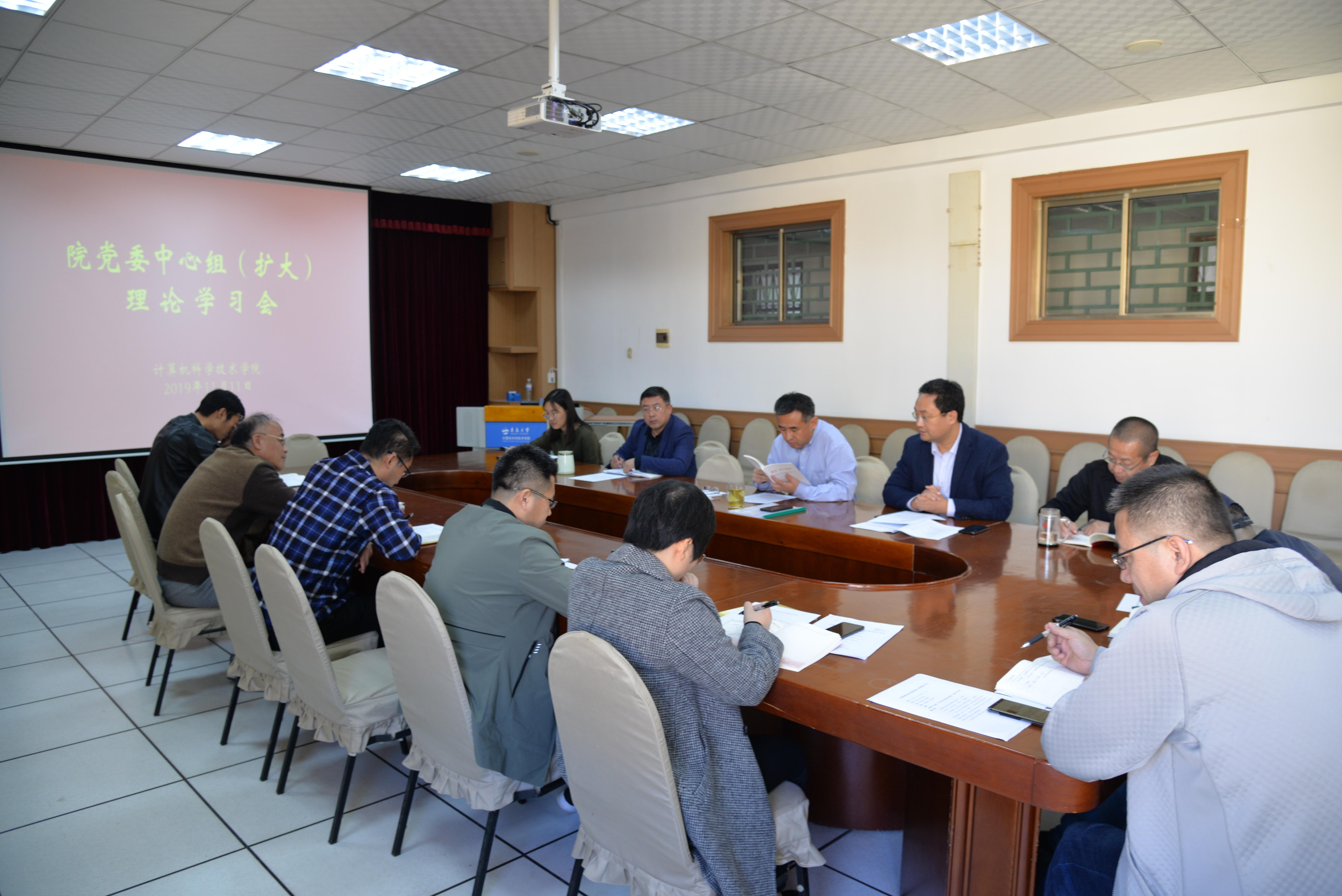 11月11日下午,院党委理论学习中心组(扩大)学习会在博知楼510会议室举行。院党委书记尹增刚,院长李建波,党委副书记周鹏,中心组其他成员,机关党支部党员,院机关相关部门负责同志参加集体学习。尹增刚主持学习会。