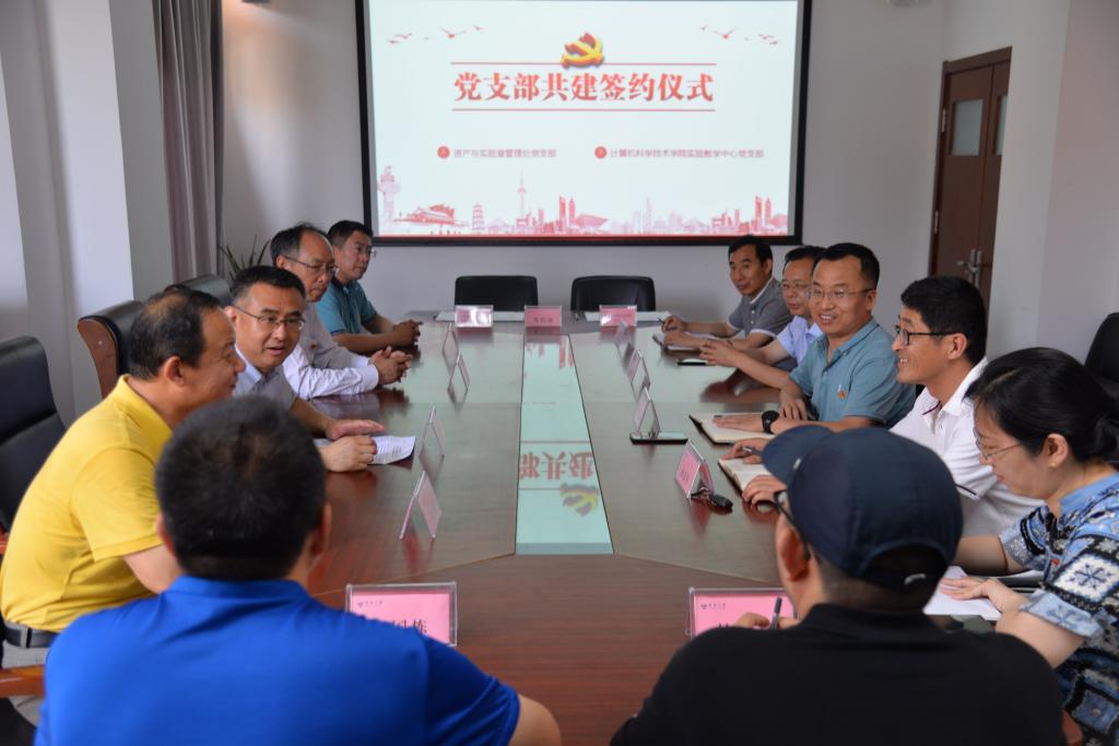 为充分发挥党组织推动发展、凝聚人心、促进和谐的作用,实现党组织优势互补、合作共赢,加强党建与业务的融合,以党建促进中心工作发展,6月22日,资产与实验室管理处党支部与伦理电影 实验教学中心党支部在办公楼117会议室举行结对共建“样板党支部”合作签约仪式,开展支部共建活动。