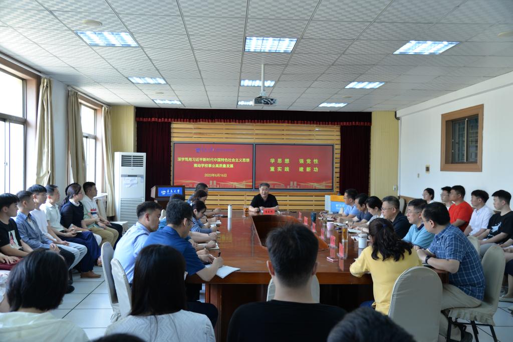 6月16日下午,校长夏东伟以《深学笃用习近平新时代中国特色社会主义思想推动学校事业高质量发展》为题,在博知楼510会议室为伦理电影 师生代表讲授主题教育专题党课。伦理电影党委书记潘秋鸿主持学习活动。