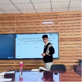 贺云龙带领同学们学习了习近平总书记关于网络强国的重要思想,增强大家的隐私保护和网络安全意识。他分享了联邦学习以及同态伪随机生成器的相关知识,并带领全体党员学习了基于HPRG的隐私保护聚合协议,该协议依赖于Shamir秘密共享方案的加法同态特性,能够防止半诚实和主动恶意对手的攻击,并拥有优越的性能。